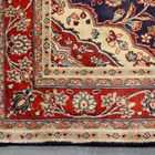 A Sarough rug, Central Persia, mid-20th century, the blue field with a shaped medallion, within a red palmette and vine border, 202cm x 126cm.