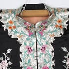 A Chinese black silk embroidered jacket, 20th century, worked in silver/gilt wire thread with flower sprays, the wire thread borders, cuffs and collar filled with polychrome flowers, leaves and stems, length 72cm, together with a silver wire thread cocktail dress and cape.
