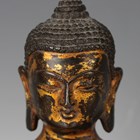 A Sino-Tibetan brown patinated and gilt bronze figure of Buddha, 20th century, modelled seated in dhyanasana, height 19.3cm. Provenance: from the estate of a West Sussex collector.