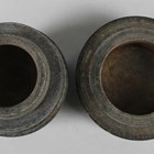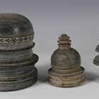 A group of three Gandhara grey schist stupa reliquaries or part sections, 2nd-3rd century, of turned domed form, heights 10.2cm, 7.4cm and 6.7cm (repairs and other minor faults). Provenance: from the estate of a West Sussex collector.