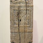 A pair of Indian Gujarat carved wood architectural columns, 16th/17th century, decorated in relief with figures, scrolls and foliage, heights 103.5cm and 105.5cm, mounted on plinth bases. Provenance: from the estate of a West Sussex collector. Note: the state of Gujarat was the chief centre of wood carving in India from at least the 15th century. The people of Gujarat used wood freely in the construction of temple pavilions, balconies, facades, doors, columns and brackets. Wood carving in the Mughal period (1556-1707) shows a blend of the indigenous and Mughal styles. Jain wooden pavilions of the late 16th and 17th centuries display richly sculpted scenes of Jain mythology and contemporary life with floral, animal, figural and geometric motifs.