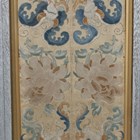 Two pairs of Chinese silk embroidered sleeve panels, late Qing dynasty, each joined as one and worked in coloured threads with butterflies amidst peonies on a cream ground, 41cm x 17cm, and 46cm x 17cm, framed and glazed.