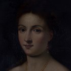 After Titian - La Bella, 18th century oil on canvas, stencils verso, 97cm x 75cm, within a gilt composition frame of wide section.