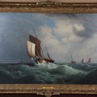 John Lynn - 'Boats Off Dungeness', 19th century oil on canvas, signed and titled to label verso, 51.5cm x 79.5cm, within a gilt composition frame with corner and centre crestings and inscribed applied plaque.