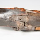 A 19th century percussion rifle with octagonal sighted barrel, barrel length 66cm, pull-out steel ramrod and associated Enfield-marked lock, full-stocked with chequered grips, the butt with percussion cap holder and steel butt plate.