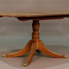 A 19th century mahogany rectangular tip-top breakfast table, raised on a turned stem and sabre legs, height 74cm, length 141cm, depth 99cm (alterations).