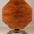 A William IV rosewood octagonal tip-top breakfast table, the edge with an applied beaded band, the turned and reeded stem above a triform base with finely carved claw feet, height 73cm, width 134cm.