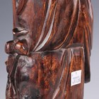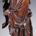 A pair of Chinese carved hardwood figures of standing sages, each raised on a naturalistic base, height 36cm (drilled for electricity).