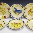 A small group of plates, 20th century, comprising six Redondo Pottery side plates, each decorated with birds and farmyard animals, diameter 21.5cm, six Cantagalli side plates, each decorated with studies of fruit, diameter 20.5cm, and three similar Italian plates (some faults).