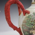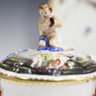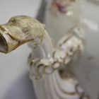 A Capodimonte porcelain cabaret set, late 19th/early 20th century, decorated in relief with mythological figural scenes, comprising teapot and cover, hot water pot and cover, milk jug, sucrier and cover, two chocolate pots, covers and saucers and shaped rectangular tray, underglaze blue marks to bases (restoration to teapot).