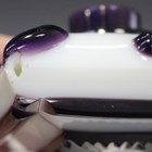 A small group of Continental glass, 19th century, including a white cased decanter, painted with enamelled floral panels and gilt foliate decoration, height 17cm, a blue flashed perfume bottle, height 15.8cm, an opaque white inkwell of square shape with ormolu crown finial, and a black glass door plate and knob (faults, losses and repairs).