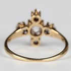 A gold and diamond ring, claw set with the principal cushion cut diamond within a surround of four smaller cushion cut diamonds, unmarked, weight 2.6g, principal diamond weight approx 0.8-0.9ct, colour approx H/I, clarity approx VS2, weight 2.7g, ring size approx O.