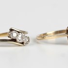 A gold, platinum and diamond three stone ring, mounted with a row of circular cut diamonds in a twistover design, detailed '18ct & Pt', weight 2.8g, ring size approx N1/2, and a 9ct gold and turquoise cluster ring, London 1967, weight 2.3g, ring size approx P.