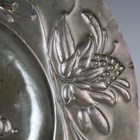 An Edwardian Arts and Crafts patinated copper charger, indistinctly dated '1905' and initialled 'J.D.', possibly James Dewdney, the central well and raised border repoussé decorated with stylized leaves and seed pods, diameter 42cm. Provenance: by direct descent from the C.H. Brannam family.