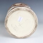 A pair of Japanese Kutani porcelain bottle vases, Meiji period, each compressed globular body painted and gilt with pheasant in a continuous landscape, beneath a tapered narrow neck filled with simulated brocade, height 30.5cm, together with a Satsuma earthenware vase, Meiji period, painted and gilt with figural and floral panels, height 30cm.