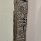 A pair of Indian Gujarat carved wood architectural columns, 16th/17th century, decorated in relief with figures, scrolls and foliage, heights 103.5cm and 105.5cm, mounted on plinth bases. Provenance: from the estate of a West Sussex collector. Note: the state of Gujarat was the chief centre of wood carving in India from at least the 15th century. The people of Gujarat used wood freely in the construction of temple pavilions, balconies, facades, doors, columns and brackets. Wood carving in the Mughal period (1556-1707) shows a blend of the indigenous and Mughal styles. Jain wooden pavilions of the late 16th and 17th centuries display richly sculpted scenes of Jain mythology and contemporary life with floral, animal, figural and geometric motifs.