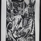 Magnus Irvin - 'Storyteller', 20th century linocut, signed, titled and editioned 2/25 in pencil, 126cm x 84cm, together with two further signed linocuts by the same hand, ''Hampstead Incident' and 'Plucking Chicken', all within frames.