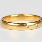 A 22ct gold and diamond three stone wedding ring, gypsy set with a row of circular cut diamonds, London 1921, weight 6.1g, ring size approx P1/2.