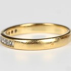 An 18ct gold and diamond ring, mounted with a row of ten princess cut diamonds, weight 4.8g, ring size approx S1/2.