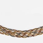A three colour gold collar necklace in a flat interwoven link design, on a sprung hook shaped clasp, detailed '750', weight 16.9g, length 46cm.