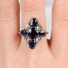 An Edwardian gold, platinum, sapphire and diamond cluster ring, mounted with the principal oval cut sapphire within a surround of four oval cut sapphires, alternating with four smaller cushion cut diamonds, detailed '18ct Plat', weight 5g, ring size approx P1/2.