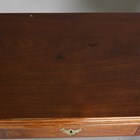 A mid-18th century mahogany fold-over triple-hinged games table, possibly American, the top with projecting corners and hinged to reveal an inlaid chess and backgammon board above a baize-lined playing surface, raised on cabriole legs and claw and ball feet, height 73cm, width 85cm, depth 42cm.
