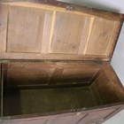 An 18th century panelled coffer with hinged lid and iron hinges, height 56cm, width 112cm, depth 50cm.