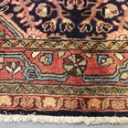 A Nanaj carpet, North-west Persia, mid-20th century, the midnight blue field with an angular medallion, within a pink flowering vine border, 350cm x 208cm.