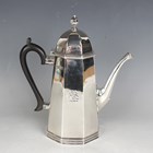 A late Victorian silver coffee pot of tapering octagonal form, the domed hinged lid above an octagonal scroll spout, London 1895 by Henry Stratford, weight 598.9g, height 22.5cm.