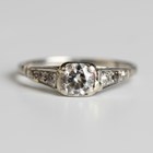A platinum and diamond ring, mounted with the principal cushion cut diamond between diamond three stone shoulders, detailed 'Plat', weight 1.5g, ring size approx I1/2.