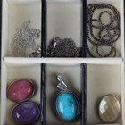 A large collection of mostly silver jewellery, including rings, pendants, bracelets, neckchains, bangles and two cameo brooches, within a jewellery case.