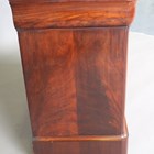 A 19th century French mahogany four-drawer commode with a grey veined marble top, on bun feet, height 99cm, width 126cm, depth 56cm.