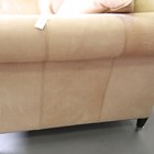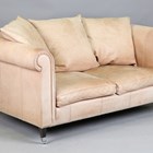 A modern pale tan buffalo leather three-seat sofa, raised on ebonized square tapering legs with chromium plated caps and castors, height 85cm, width 180cm, depth 111cm.