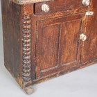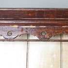 A mid-19th century Irish painted pine dresser, County Mayo, West Ireland, the pierced frieze above three shelves, the base with two drawers and panelled cupboard doors, height 195cm, width 158cm, depth 46cm.