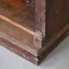 A late Victorian stained pine open bookcase, fitted with three adjustable shelves, height 112cm, width 107cm, depth 36cm.
