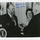 AUTOGRAPHS, AMERICAN PRESIDENTS. A black and white photograph of Gerald Ford and Betty Ford signed in blue ink, 255mm x 206mm., together with a colour photograph signed by Jimmy Carter and Rosalynn Carter in black ink and a postcard-size printed portrait signed by Richard Nixon in black ink.
