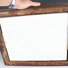 A decorative ceramic rectangular wall tile, designed as a pair of great tits amongst holly branches, 38.3cm x 30.7cm, within a wooden frame.