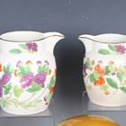 A mixed group of pottery and glassware, mostly 19th century, including a graduated pair of Wedgwood pearlware jugs, decorated with flowers and foliage, heights 13cm and 11cm, two nursery plates, two Staffordshire shoe shine figures, height 25cm, and a Choisy Le Roi First World War patriotic plate (some faults).