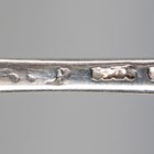 A set of six George II silver Old English pattern dessert spoons, London, date letter indistinct, by Ebenezer Coker, weight 229.7g, length 16cm.