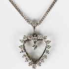 A diamond pendant in an open heart shaped design, claw set with circular cut diamonds, length 3cm, weight 3.7g, on a 9ct white gold curblink neckchain with a sprung hook shaped clasp, detailed '375', weight 6.6g, length 46cm.