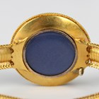 A Victorian gold and turquoise bracelet and matching brooch in the classical taste, the front of the bracelet and top section of the brooch of circular form with applied wirework decoration, with turquoises set at intervals, the brooch with a pendant tassel drop, both pieces glazed with locket compartments to the back, unmarked, length of bracelet 16.5cm, length of brooch 6.5cm, total weight 33.5g, with a fitted case, the lid detailed 'W.H. Tooke, Liverpool' (the hinge broken).