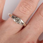 A 9ct white gold and diamond ring, claw set with the principal circular cut diamond between two smaller circular cut diamonds, with diamond set shoulders, weight 2.6g, ring size approx M.