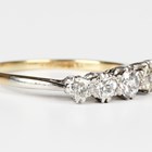 A gold, platinum and diamond five stone ring, claw set with a row of circular cut diamonds graduating in size to the centre stone, detailed '18ct Pt', weight 2.6g, ring size approx Q1/2.