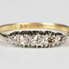 A gold, platinum and diamond five stone ring, mounted with a row of cushion cut diamonds graduating in size to the centre stone, detailed '18ct & Pt', weight 2g, ring size approx N.