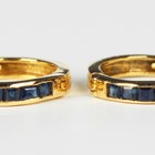 A pair of gold and sapphire hoop earrings, each channel set with square cut sapphires, detailed '585', weight 1.7g, length 1.2cm.