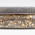A Japanese damascened iron snuff box, Meiji period, of oblong form, the hinged lid finely worked with a dragon, the sides with inlaid foliage, the underside with crane and bamboo panel, gilt signature to cover interior, length 8.6cm.