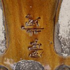 A Chinese Ming tilework zoomorphic roof beam terminal/support, Ming dynasty, modelled as a fanged Buddhistic lion head and covered in a yellow glaze, incised two-character mark to top, length 25cm.