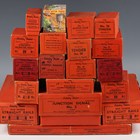 A good collection of Hornby Trains gauge O items, including a clockwork 0-4-0 tank locomotive 2900 LNER, a No. 20 tender, a No. 50 tender, four LNER 'teak' coaches, LMS coaches, various goods wagons, a brake van SR, a crane truck, a turntable, track, points, a No. 2 junction signal, a girder bridge and platform, station hoardings and figures, the majority boxed (some playwear, repainting, some boxes scuffed).