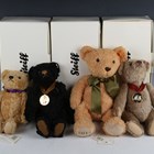 Eleven modern Steiff teddy bears, comprising 2014 Cosy Year Bear, 2013 Teddy Bear, Diana 1st July 1961, Aquarius, William, 2014 Black Bear, Prince George, Bojangles, Coffee and Cream, Bear of the Year 2013 and Coronation bear, all boxed, some with certificates.