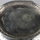 A George II silver oval cake basket with foliate capped scroll swing handle, the pierced sides beneath a cast scallop shell and scroll rim, the centre engraved with an armorial, on a pierced oval base, London 1740 by John Jacob, weight 1906.8g, length 36cm.